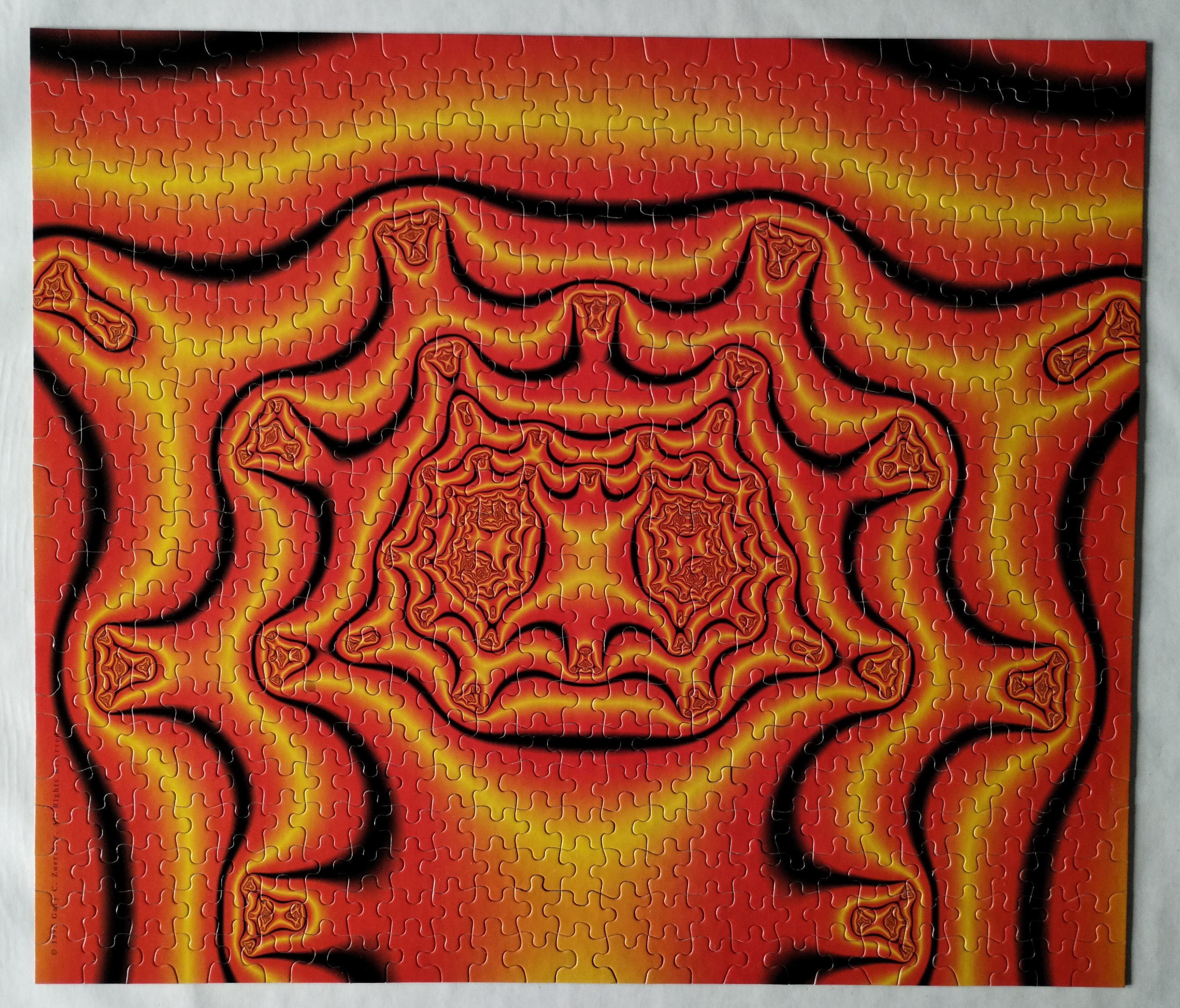 9912/30/2025 - 1/5/2026 Fractal Dreams 550 piece, 15.5"x18" I've had this puzzle for about 10 years and thought it would be frustating to complete. It was not as difficult as I thought. |
