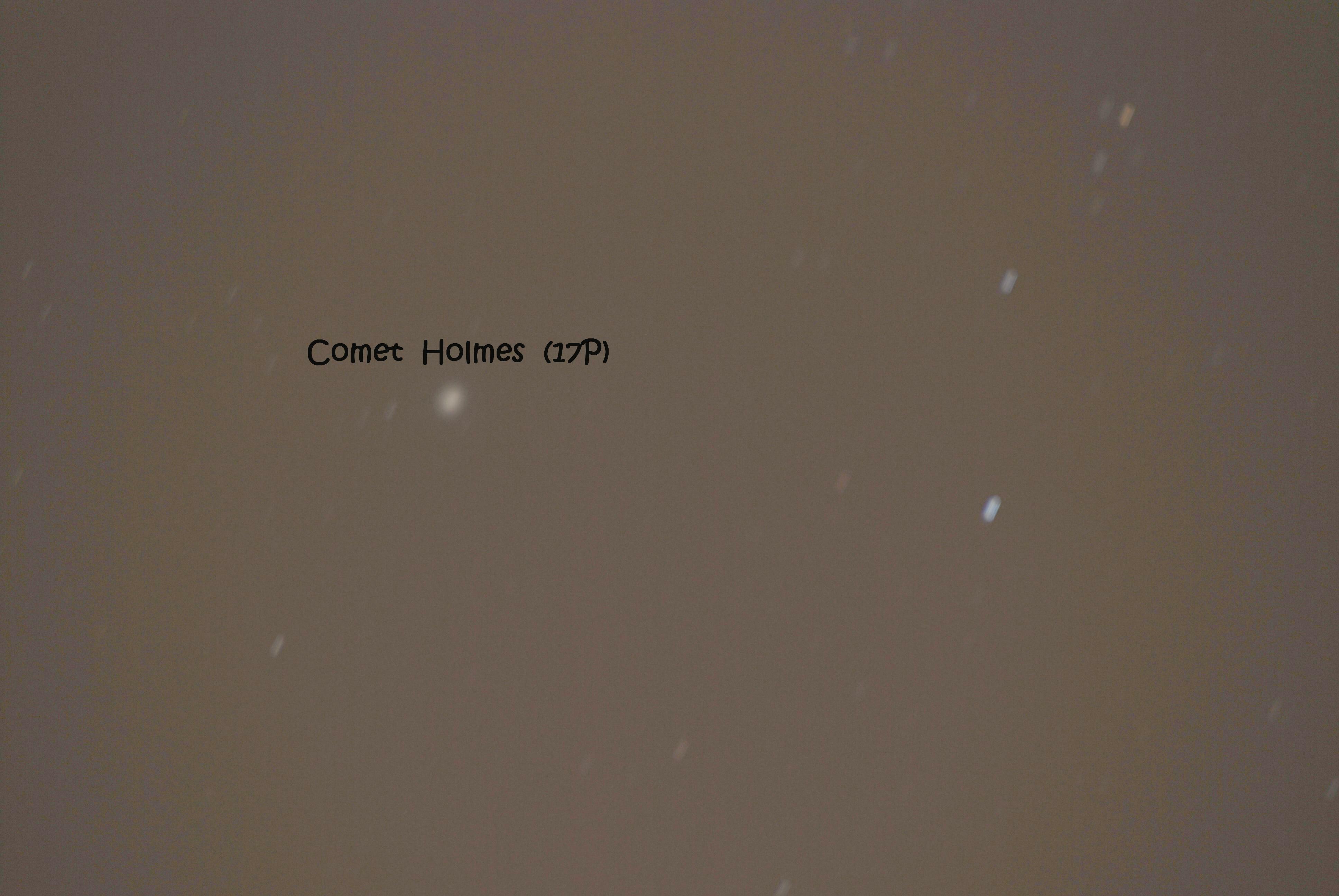This image shows the comet Holmes (17P) in the lower left of the constellation